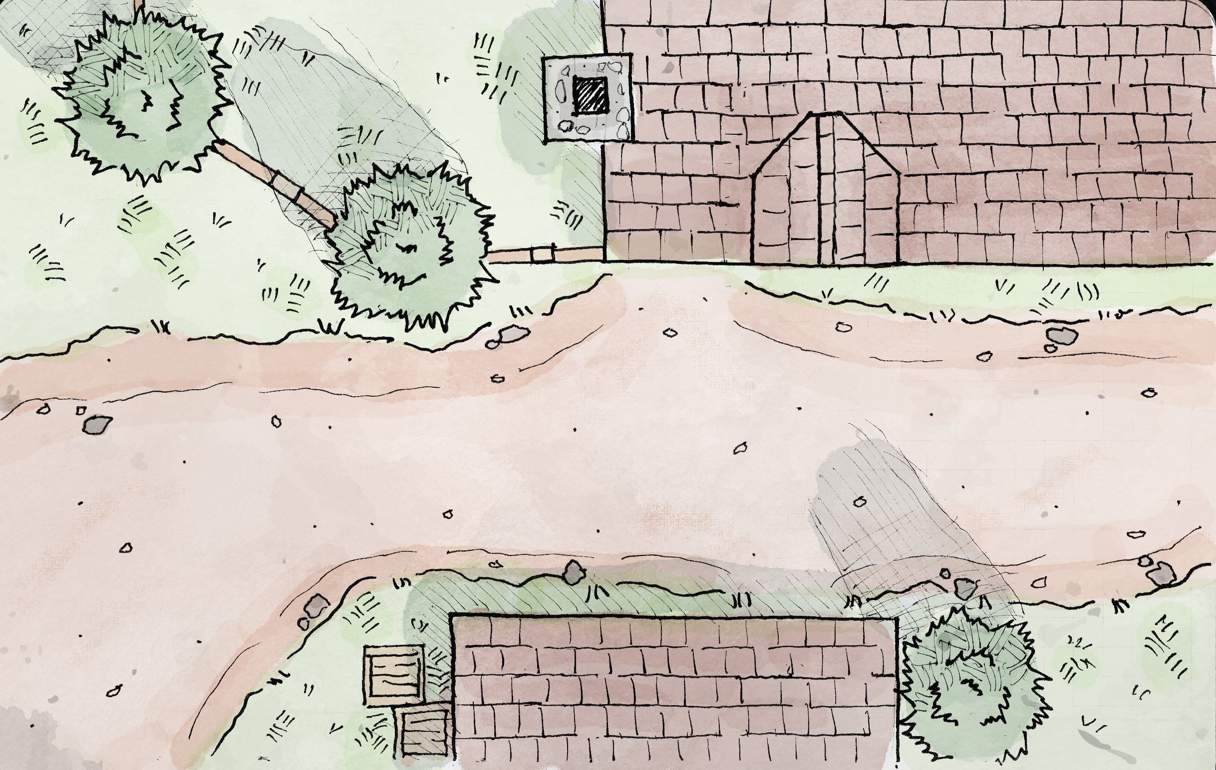 Here's another map from my sketchbook, a simple street in an unnamed town. Download the color or line art versions below, with grid or without grid.